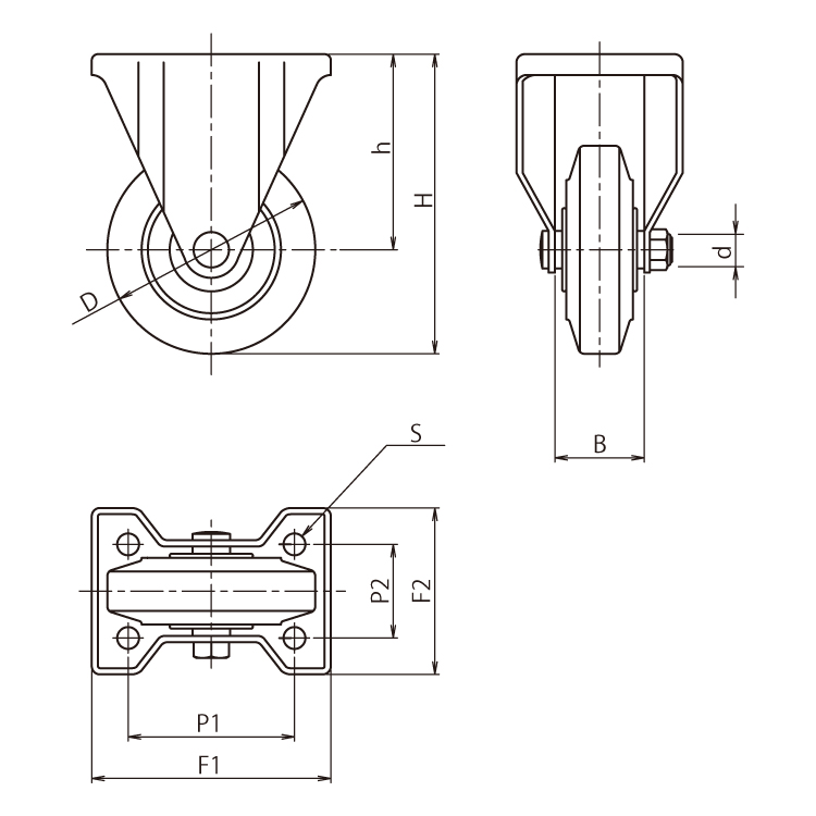 | キャスタタイプ | プレート式自在 | 車輪材質 | ゴム |