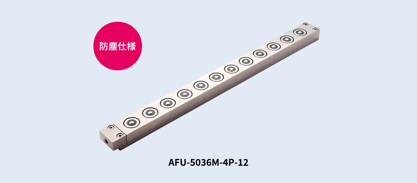 圧縮エアーを供給することにより各ピストンに内蔵されたフリーベアが一斉に上昇します。設置の際に機械のベッドに角溝加工を施すことにより、治具、金型、ワークの搬送・位置決めが可能です。