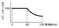 インバータによる可変速運転が可能。周波数が小さくなってもトルク値が下がることなく、出力100%の定トルク運転ができます。